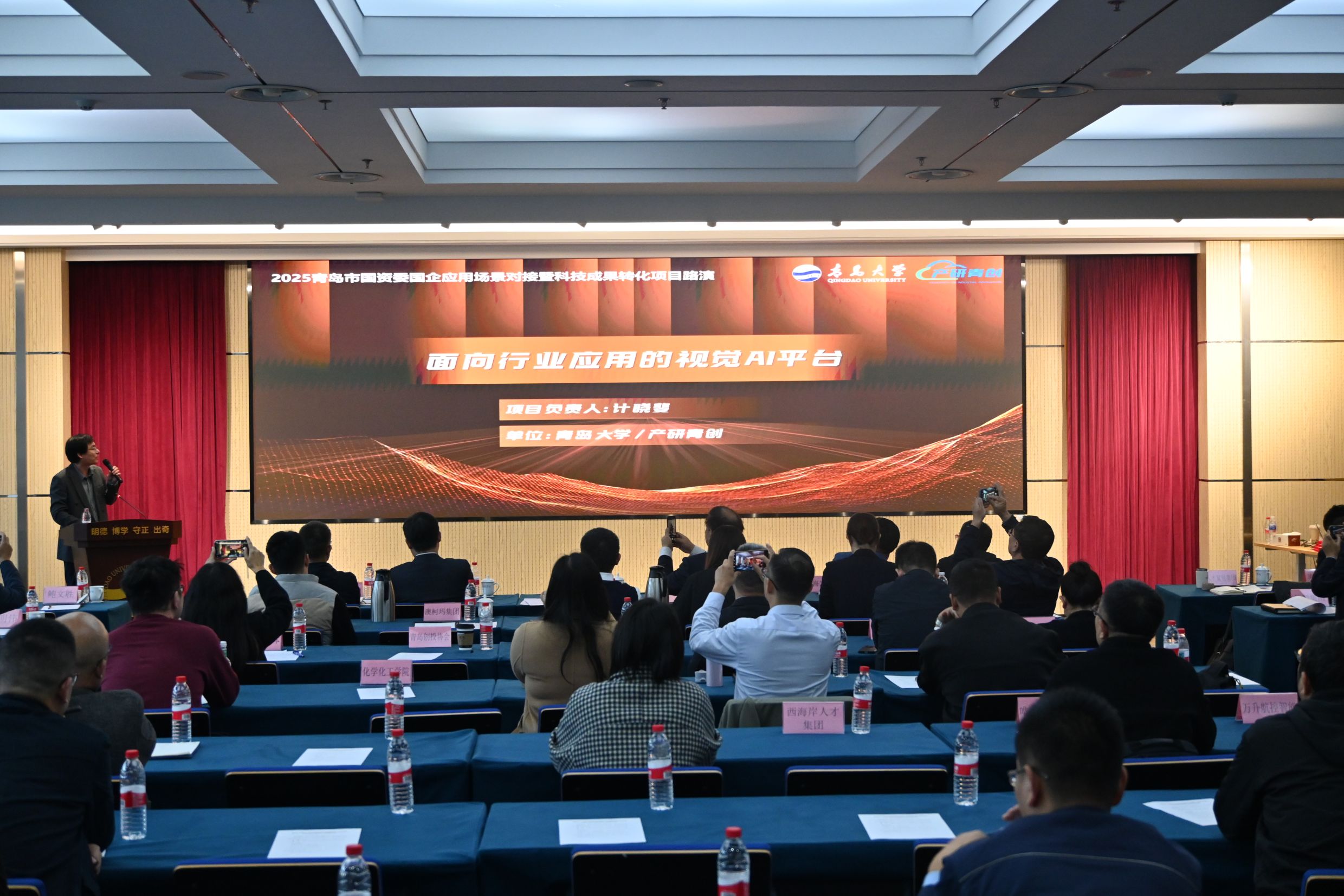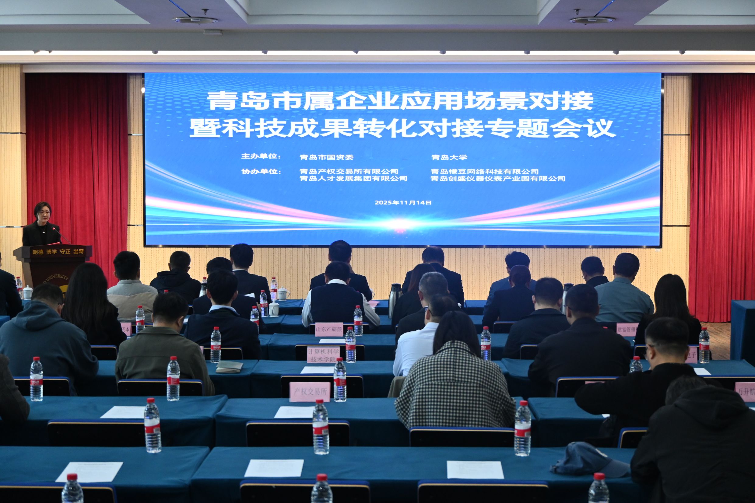 為深化國企高校的合作,加速科技成果向現(xiàn)實生產(chǎn)力轉(zhuǎn)化,11月14日下午,由青島市國資委與青島大學(xué)聯(lián)合主辦、青島國投集團(tuán)旗下青島產(chǎn)權(quán)交易所協(xié)辦的“市屬企業(yè)應(yīng)用場景對接暨科技成果轉(zhuǎn)化對接會”在青島大學(xué)會議中心成功舉行。市國資委、青島大學(xué)相關(guān)領(lǐng)導(dǎo)、市屬企業(yè)負(fù)責(zé)人、高校專家及投資機(jī)構(gòu)代表等140余人參會。