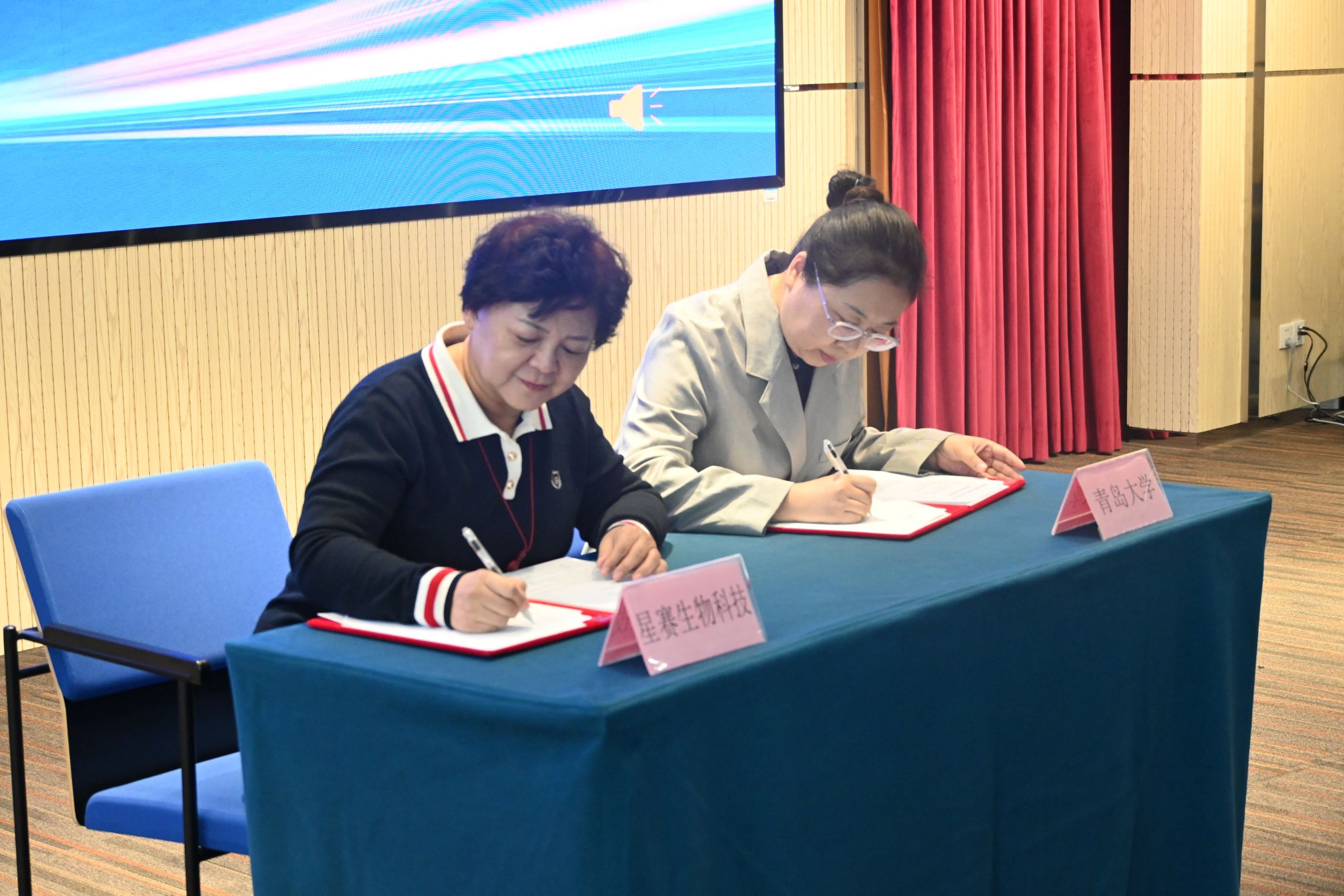 在簽約環(huán)節(jié),經(jīng)過前期多次成果轉(zhuǎn)化對接,瓴川智能科技有限公司和青島星賽生物科技有限公司分別與青島大學(xué)進(jìn)行合作意向的簽約。