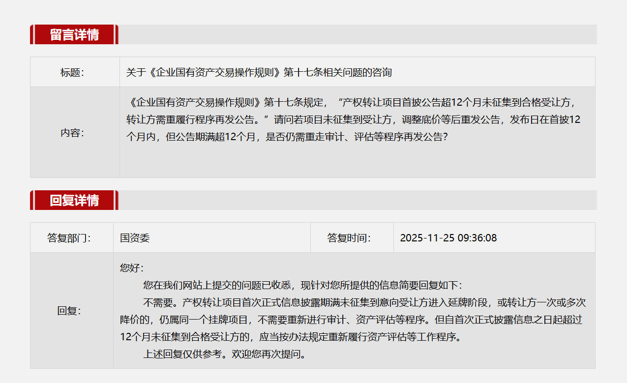 關(guān)于《企業(yè)國有資產(chǎn)交易操作規(guī)則》第十七條相關(guān)問題的咨詢