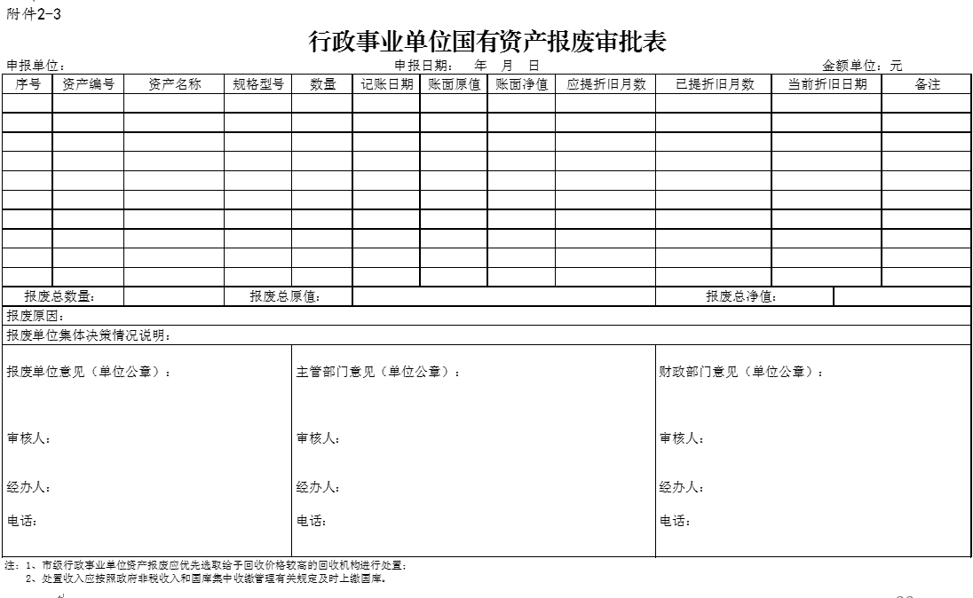 2.《行政事業(yè)單位國有資產(chǎn)報(bào)廢審批表》;