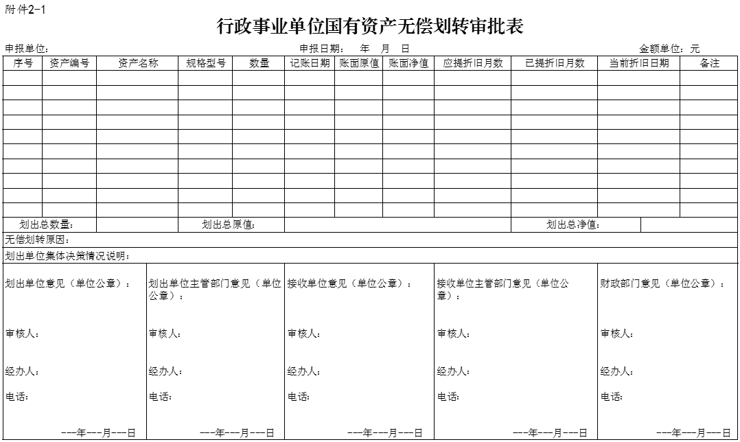 2.《行政事業(yè)單位國有資產(chǎn)無償劃轉(zhuǎn)審批表》;